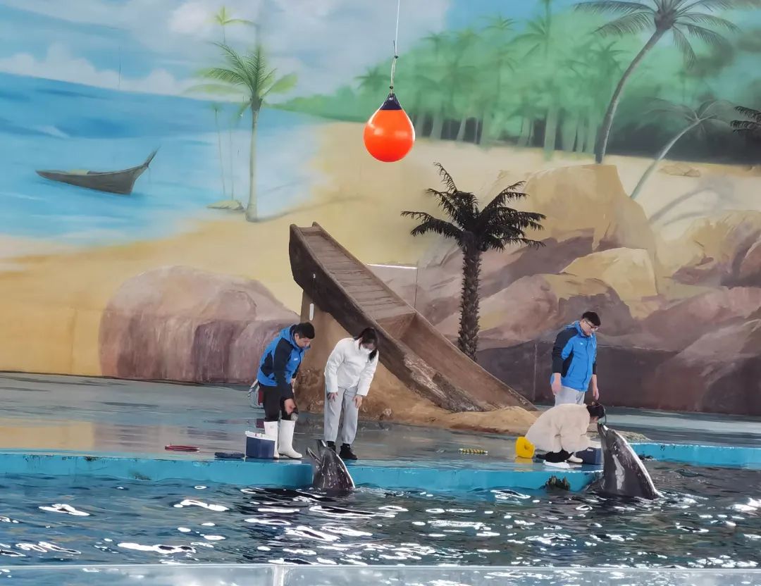 在海洋劇場,海豚明星們與馴養(yǎng)師默契配合,在水中奉獻(xiàn)出一場場精彩的演出,海豚們靈活的身姿、可愛的外表、天籟般的歌聲以及馴養(yǎng)師們卓越的水秀技巧,贏得了現(xiàn)場觀眾的陣陣歡呼。