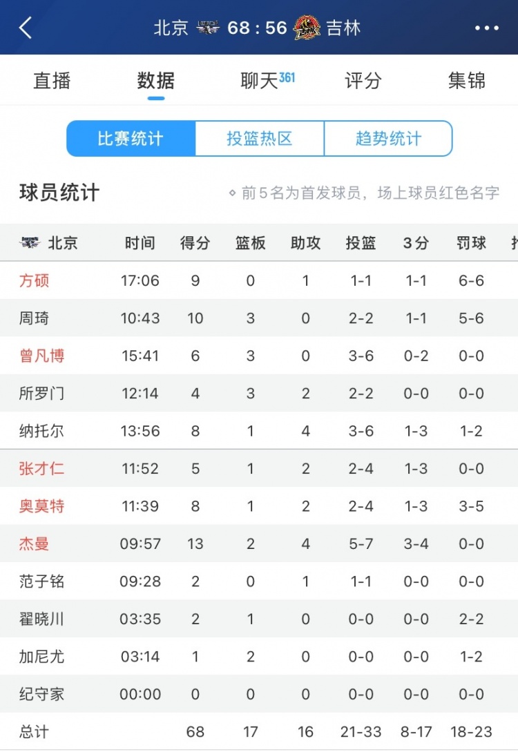 - 全民皆兵!北京半場11人出場輪換皆有得分入賬 周琦10分&杰曼13分