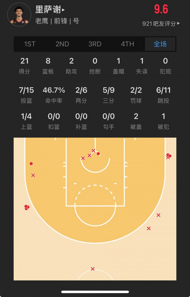 老鷹狀元秀 扎卡里-里薩謝 登場23.6分鐘