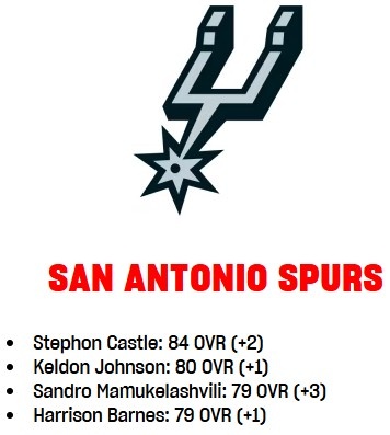 - 馬刺球員2K能力值更新:4號秀卡斯爾+2至84 馬穆+3 烤雞&巴恩斯+1