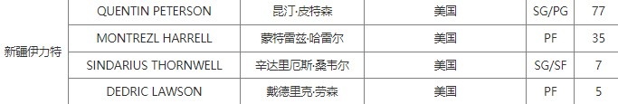 目前新疆四外援分別為:皮特森、哈雷爾、桑韋爾和勞森。