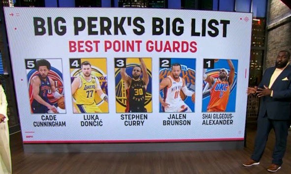 3月6日訊 今日,評論員帕金斯在節目上列出了他心目中聯盟目前前5的控衛: