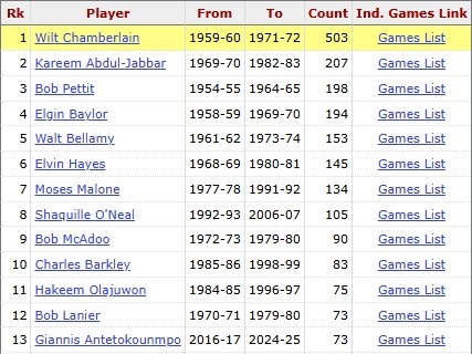 - 字母哥74次30分15板歷史第12 隊史剛好達到賈巴爾的一半