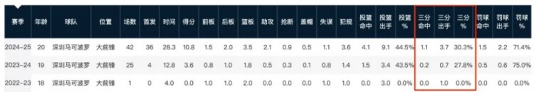 雖然標榜的是“空間型四號位”,但有解說會在提到王浩然時用“非空間點”來形容他,他像MPJ那樣大跳投,但卻沒有MPJ的準度,30.3%的三分球命中率在小球時代確實是不夠看......