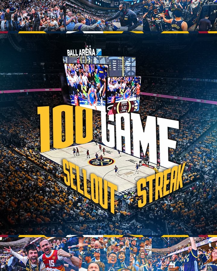賽后,掘金官推表示,波爾球館(掘金主場)已經連續100場比賽球票售罄。官推寫道:“謝謝你,掘金國度!”