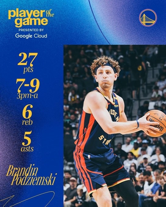 此役勇士后衛波杰姆斯基表現非常出色,打了27分鐘14投9中,三分9中7、罰球2中2砍下全場最高27分外加6籃板5助攻1搶斷,正負值+22。