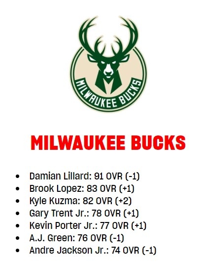 雄鹿球員2K能力更新:利拉德-1至91 庫(kù)茲馬+2至82 小凱文-波特+1