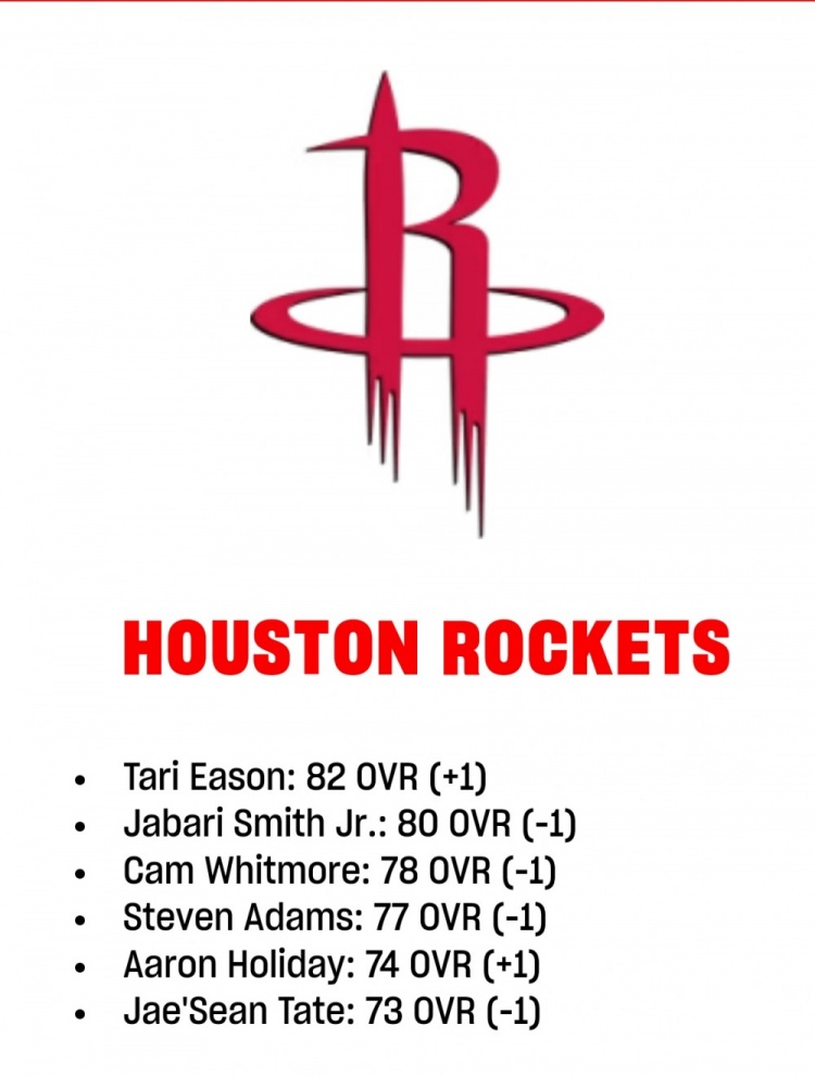 - 火箭2K能力值更新:伊森升至82 小賈巴里&惠特摩爾分別降至80和78