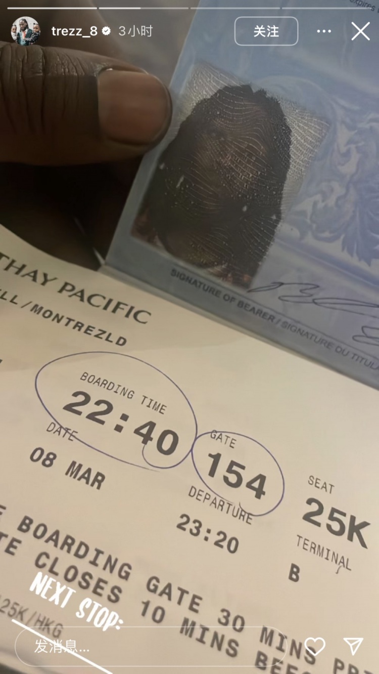 發布時間:2025年03月09日 18:19點擊:欄目:籃球新聞 3月9日訊 哈雷爾今天更新社媒,曬出了自己的機票以及準備登機的圖片。相關消息源對記者透露,哈雷爾今日啟程前往中國香港,他將在辦理相關簽證后,盡快與新疆隊會合。 本文標簽: 籃球 CBA 中國籃球 新疆 相關閱讀: 來了!哈雷爾社媒曬出機票 目的地為中國香港 雷迪克:我對球隊的整體節奏不滿意 球隊在半場進攻時沒有沖擊力 班獅回朝!明晚客場對陣廣州三番戰 里夫斯談詹姆斯受傷:永遠不想看到兄弟受傷 他對球隊不可或缺 里弗斯談絕殺失敗:每天我都能接受利拉德出手制勝投籃 基迪26分10板12助 真實命中率73% 比肩喬丹成公牛隊史第二人! 追夢談關鍵三分:知道對手想封鎖庫里 很高興那球投進了 追夢:我們獲得了41次罰球機會 球隊很好地利用了活塞的侵略性 直播吧:廣東隊依規就與山西比賽判罰提出異議 庫里解鎖生涯25000分!追夢:能每晚與他并肩作戰是種榮幸