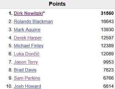 本場過后,諾維茨基隊史得分來到16644分,超越羅蘭多-布萊克曼(16643分),成為球隊的得分王。而諾維茨基在小牛的最終職業生涯得分定格在31560分。
