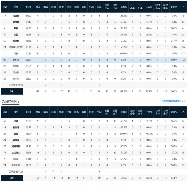 上半場(chǎng)比賽,遼寧全隊(duì)一共出現(xiàn)了14次失誤,而吉林全隊(duì)的失誤數(shù)為10次。