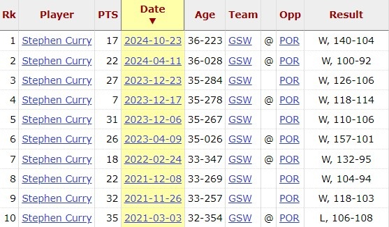 庫(kù)里目前對(duì)開(kāi)拓者10連勝 他上次輸給開(kāi)拓者還是1469天前