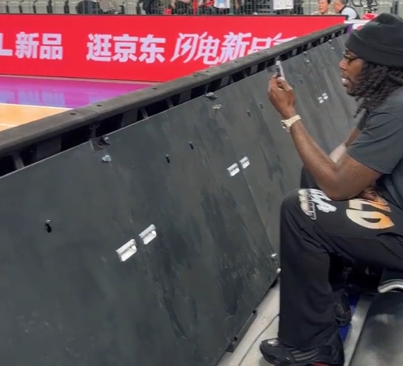 哦呦?你來了!新疆新外援哈雷爾場邊觀戰新疆主場vs深圳的比賽