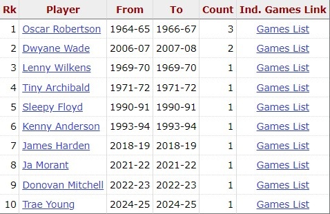 - 利拉德單場至少20分5板10助且0失誤 NBA歷史第2老&僅次于詹姆斯