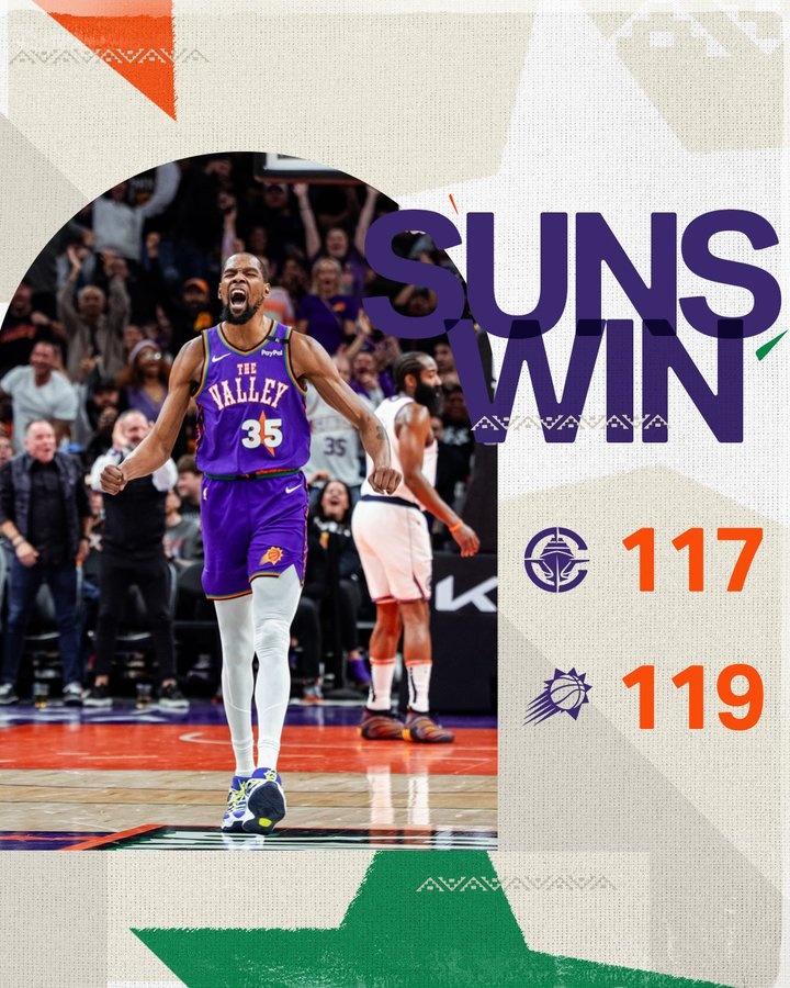 賽后,太陽官方曬出贏球海報,為球隊獲勝立下大功的杜蘭特登上封面,哈登成為背景。