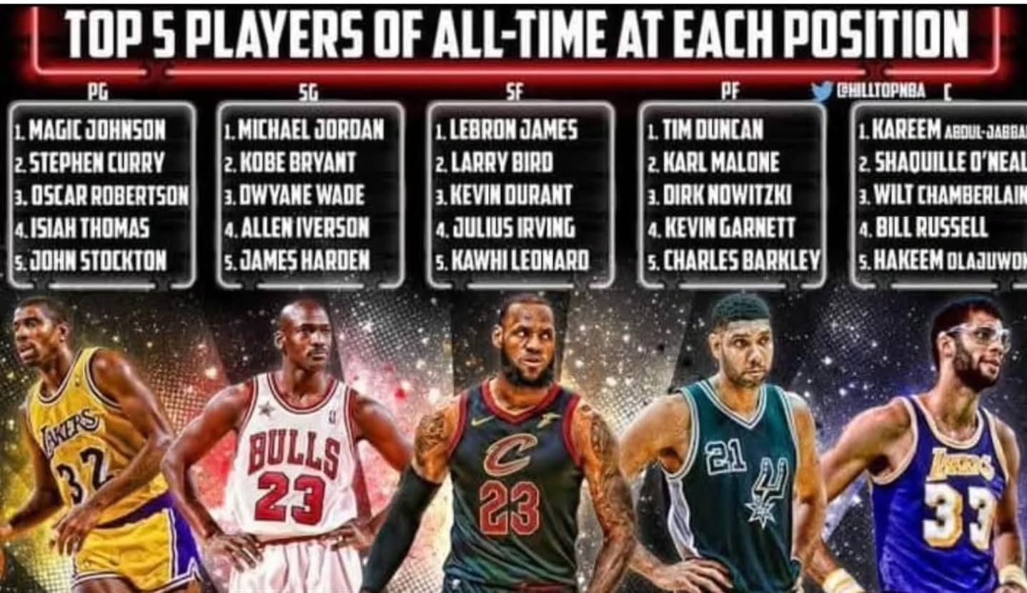 鯊魚曬各位置歷史TOP5:后衛魔術師/喬丹 前鋒老詹/石佛 中鋒天勾