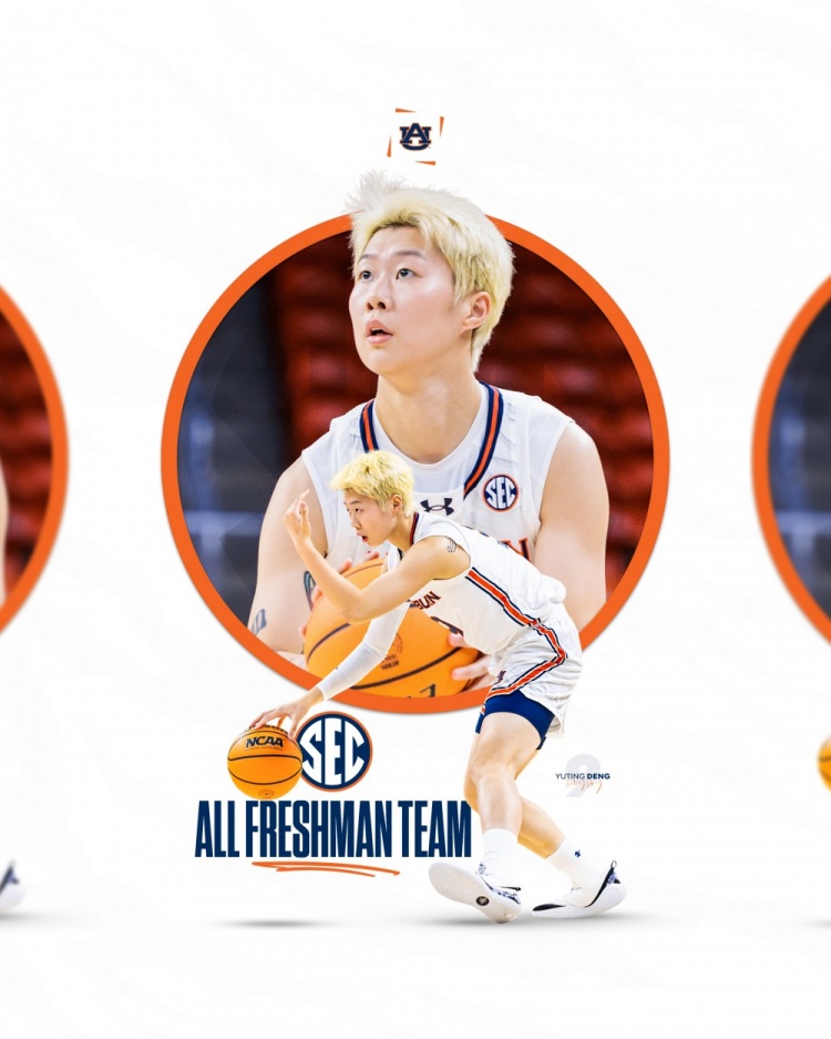 鄧雨婷本賽季投進25記三分球,是奧本大學隊內第一;出戰11場,7次得分上雙;場均12分,在賽區新人中排名第五。