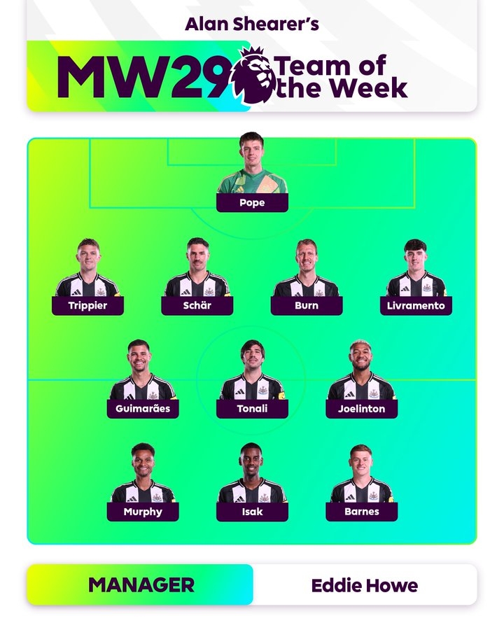 在昨天結束的聯賽杯決賽中,紐卡2-1擊敗利物浦,時隔70年再次奪冠。英超官方也調侃道,對于紐卡名宿希勒來說,本輪的最佳陣容只有一個,那就是紐卡在聯賽杯決賽中的首發陣容。
