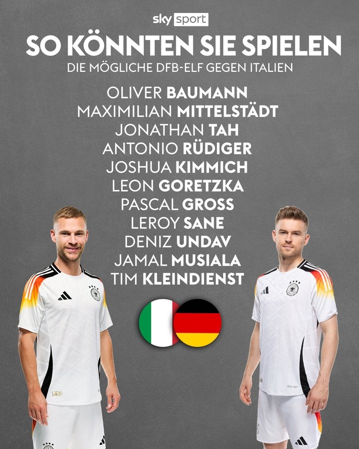 德天空預測德國隊首發陣容:基米希、穆西亞拉、薩內、呂迪格在列