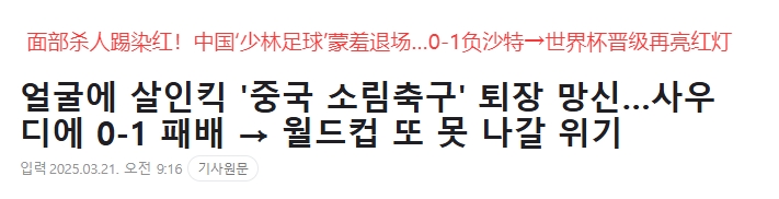 - 韓媒大面積群嘲國足:殺人飛腿、少林足球、蒙羞退場、世界杯夢碎
