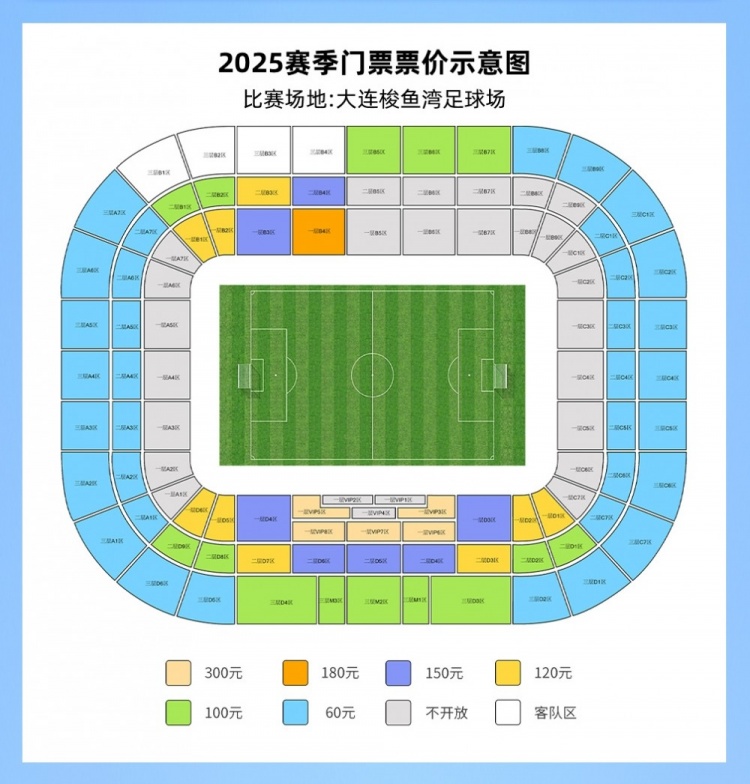 - 大連英博新賽季主場首戰下周一開票,票價60-300元分為6檔