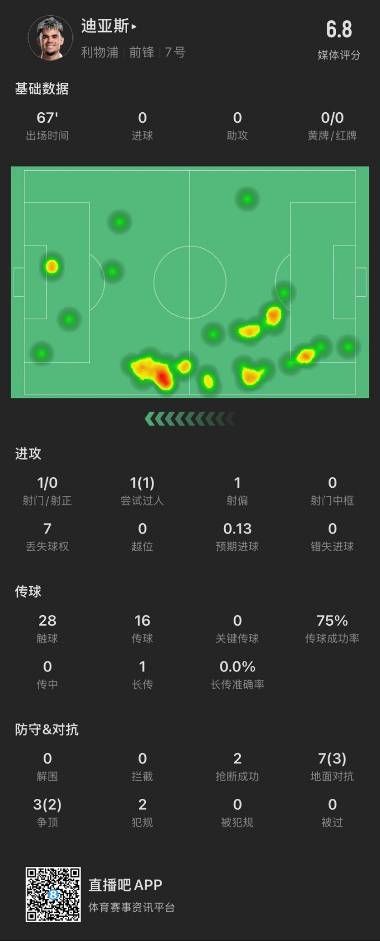 3月6日訊 歐冠1/8決賽首回合強強對話,利物浦客戰巴黎的比賽正在進行。本場比賽,迪亞斯狀態欠佳,在第67分鐘被努涅斯換下。