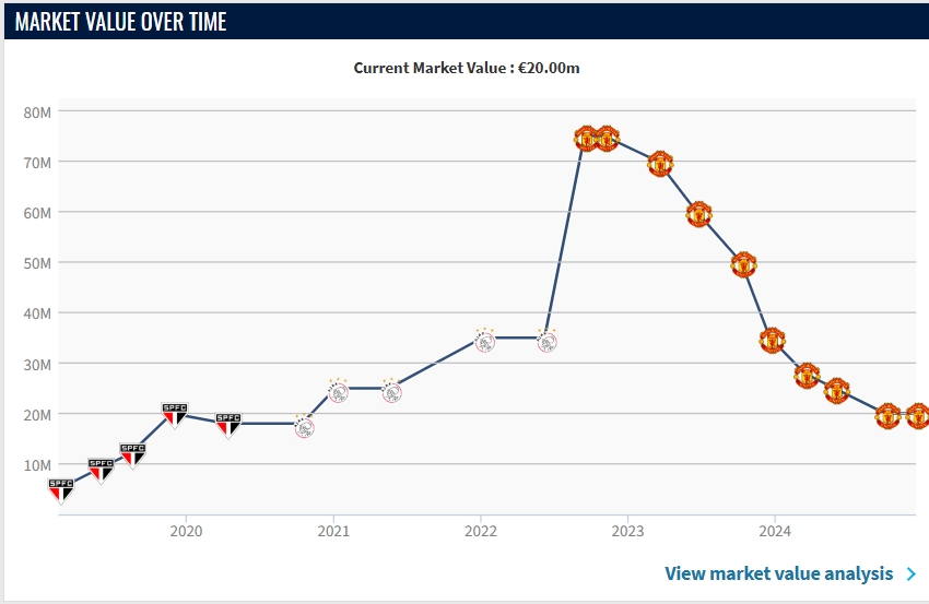 本賽季25歲的安東尼自曼聯(lián)租借至皇家貝蒂斯后狀態(tài)火熱,為皇家貝蒂斯出場(chǎng)11場(chǎng)已打入4球,并有4次助攻,且多為關(guān)鍵進(jìn)球,幫助皇家貝蒂斯近期斬獲西甲五連勝。可他的身價(jià)卻與去年12月份相同,仍為2000萬歐元。