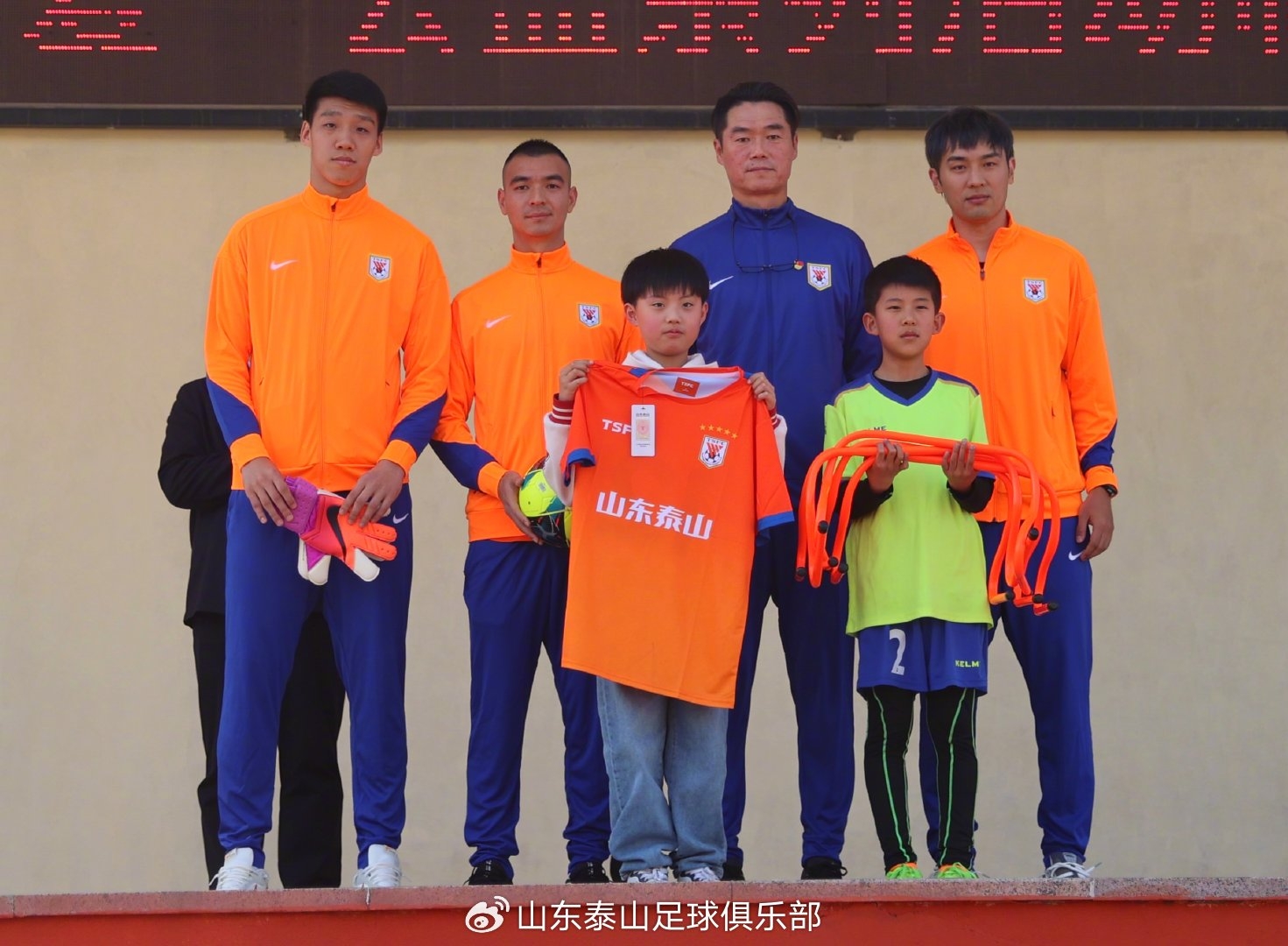 活動(dòng)中,山東泰山足球俱樂部向?qū)W校及臨沭縣體育部門捐贈(zèng)了簽名足球、簽名球衣、守門員手套及專業(yè)足球訓(xùn)練裝備等物資,山東省體育記者協(xié)會(huì)體育記者足球聯(lián)隊(duì)也向?qū)W校捐贈(zèng)了學(xué)習(xí)用品和足球裝備。隨后,俱樂部球員們給學(xué)生們進(jìn)行了足球基礎(chǔ)技能培訓(xùn),并組織了趣味足球游戲,讓孩子們?cè)跉g聲笑語中感受足球的魅力。
