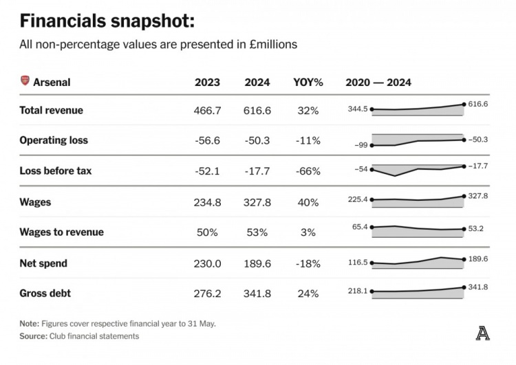 也正因?yàn)槿绱耍诎⑸{已經(jīng)連續(xù)六年出現(xiàn)虧損的情況下,PSR已然成為槍手所有者和球迷共同關(guān)心的話題。但說(shuō)實(shí)話,大家也不需要過(guò)多擔(dān)心——盡管他們不能像其他球隊(duì)那樣申報(bào)高額虧損。