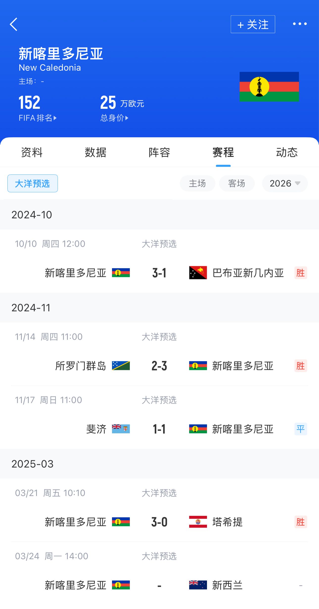 新喀里多尼亞FIFA排名第152,陣容身價(jià)25萬歐,不及新西蘭的百分之一。