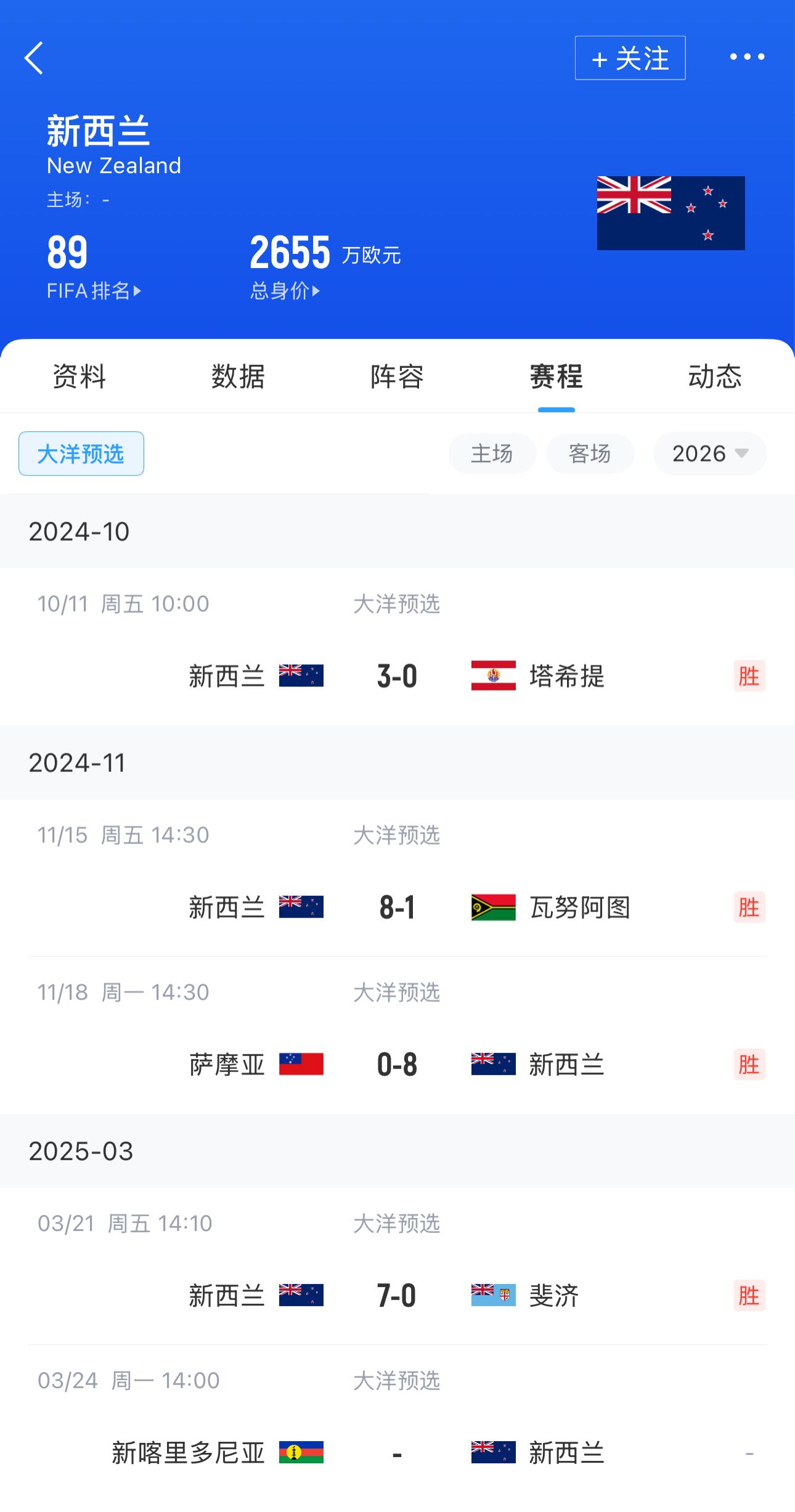 03月24日訊 今天14:00,大洋預(yù)選決賽開打,新喀里多尼亞對(duì)陣新西蘭,勝者將拿到大洋洲的直通名額,直接晉級(jí)2026世界杯。
