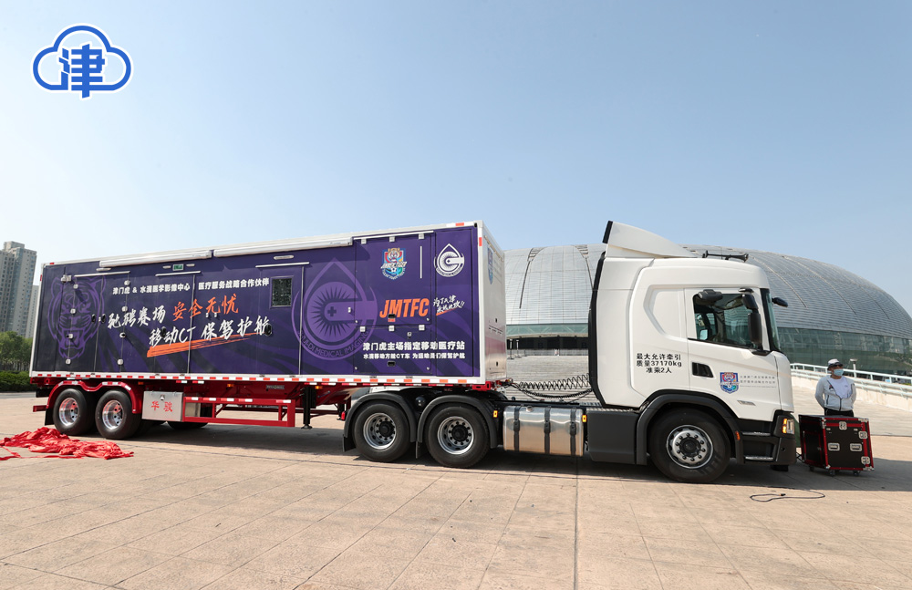 據悉,這是天津首臺移動方艙CT車。津門虎隊主場進行比賽時,水滴影像中心均會派遣這臺移動方艙CT車隨隊出征。