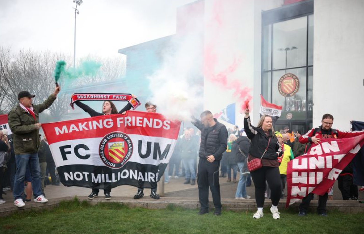 曼聯重要球迷組織1958近期持續在老特拉福德球場外抗議格雷澤家族所有權,以及其他影響球迷文化的議題,今日兩大球迷群體共同表達對美資持有曼聯的反對立場。此外,曼聯球迷1958宣布將在下周日在老特拉福德球場與曼城的德比中舉行靜坐示威。