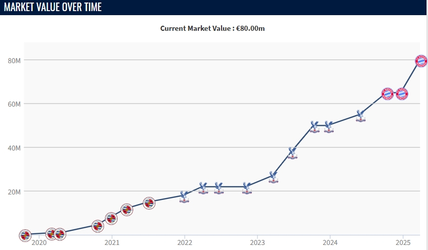 在上周的德轉身價更新中,23歲的奧利塞身價已經暴漲至8000萬歐,在拜仁隊內僅次于穆西亞拉和凱恩。這名年輕的法國人現在已經被拜仁球迷寄予了厚望。