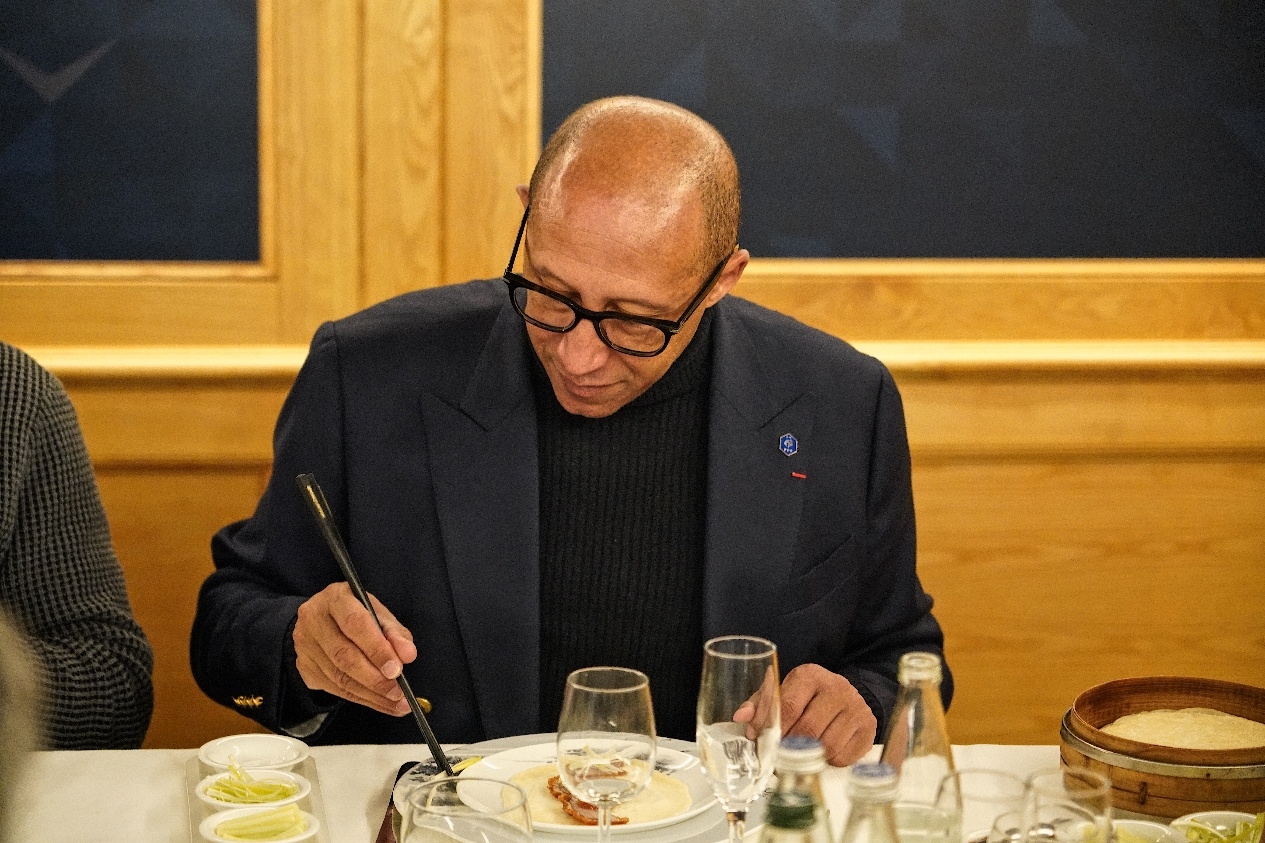 會(huì)面結(jié)束后,周云杰先生邀請(qǐng)迪亞洛主席一同共進(jìn)午餐。一同出席午宴的重要成員還有歐塞爾市長(zhǎng)馬勞、斯特拉斯堡主席馬克-凱勒和足協(xié)領(lǐng)導(dǎo)小組成員帕朗。本次午宴特別邀請(qǐng)了波爾多全聚德的主廚操刀制作烤鴨,希望各位客人可以在法國(guó)品嘗到地道的中國(guó)美食和文化。
