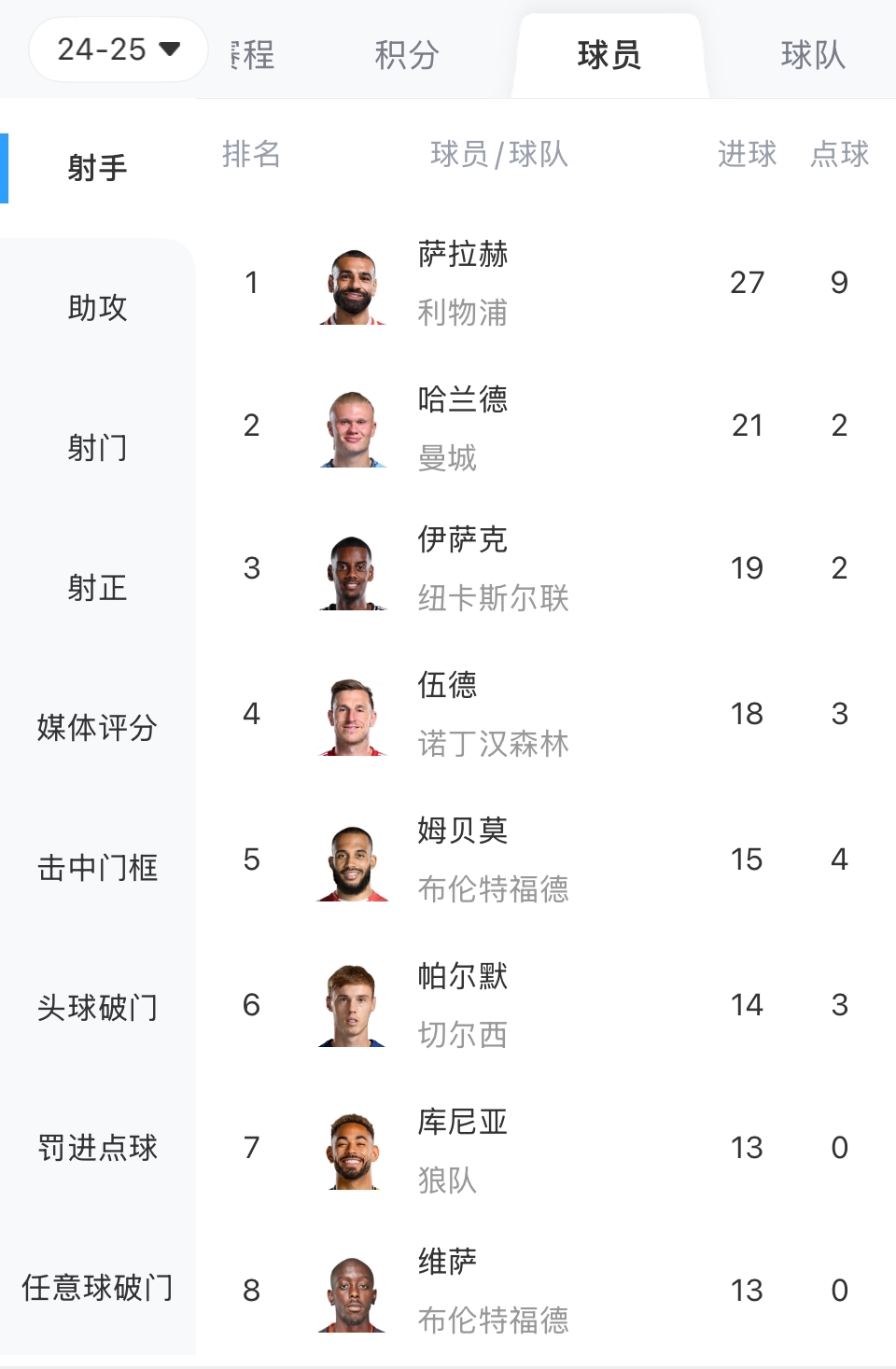目前在英超的射手榜上,哈蘭德排名第二,落后第一的薩拉赫6個進球。
