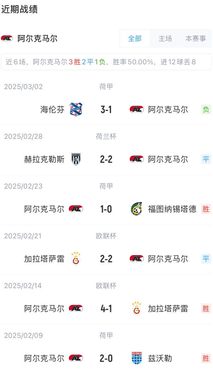 阿爾克馬爾首發:1-奧烏蘇、16-每熊晟矢、3-古斯、5-曼努埃爾、18-穆勒-沃爾夫、8-穆勒-沃爾夫、28-布梅斯特、6-庫普梅納斯、21-波庫、9-帕洛特、23-拉赫多