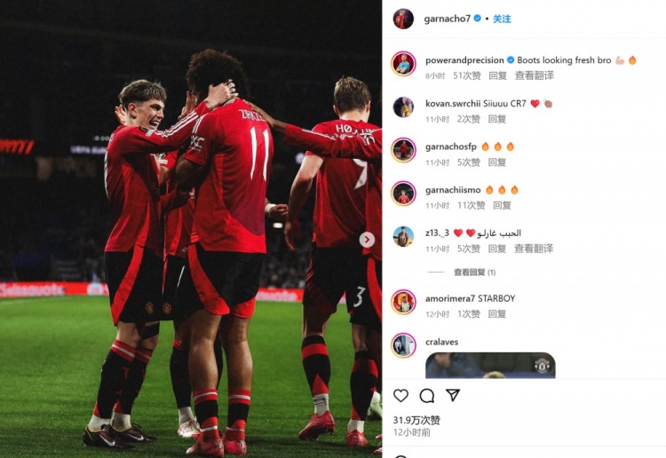 兩人也都在賽后通過社媒曬出比賽照紀念,但沒有附加文字內容。而隊長馬奎爾則現身齊爾克澤的評論區并夸獎:“愛了,兄弟!”