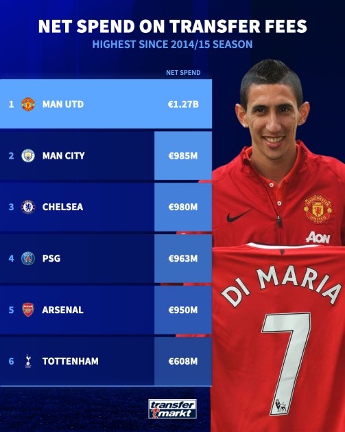 費迪南德隨后曬出弗格森離任后曼聯的引援花銷(12.7億英鎊,世界第一),補充道:“當時球隊里有19名國家隊球員,順便說一句,我們領先11分拿了英超冠軍。從那以后,球隊的引援水平一直很差。但我在過去幾天里讀到,這都是頭兒(弗格森)的錯,真是一派胡言……