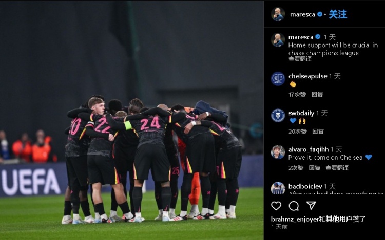 發布時間:2025年03月09日 15:00點擊:欄目:足球新聞 3月9日訊 今天晚上10點,切爾西將在主場對陣萊斯特城。賽前,切爾西主帥馬雷斯卡更新社媒。馬雷斯卡社媒寫道:主場球迷的支持,是我們爭奪歐冠資格的動力!(英超前四)目前,切爾西46分排名英超第五,僅差第四&多賽一場的曼城1分。 本文標簽: 足球 英超 切爾西 相關閱讀: 差1分進前4&今晚對萊斯特城!馬雷斯卡:主場球迷是我們爭四動力 向世界傳播長春足球文化 亞泰青訓與駐長留學生聯隊以球會友 黃健翔:瓜迪奧拉要么自我否定著去贏球,要么堅持自己卻贏不下來 法甲彩經:昂熱做客取分 尼斯擊退里昂? 重慶銅梁龍新賽季中甲出征儀式今日上午舉行,新賽季主打攻勢足球 阿隆索:維爾茨正接受腳踝檢查,魏瑟的動作可能是一張紅牌 恰20:意甲第50球意義重大,我想我是唯一達成該成就的土耳其人 原來是曼城球迷?嫂子曬度假照,李源一身著曼城球衣帶娃 國米迎成立117周年紀念日,官推曬海報:勞塔羅&薩內蒂等眾星出鏡 小因扎吉:勞塔羅很疲勞但并無大礙,澤林斯基將缺席一段時間