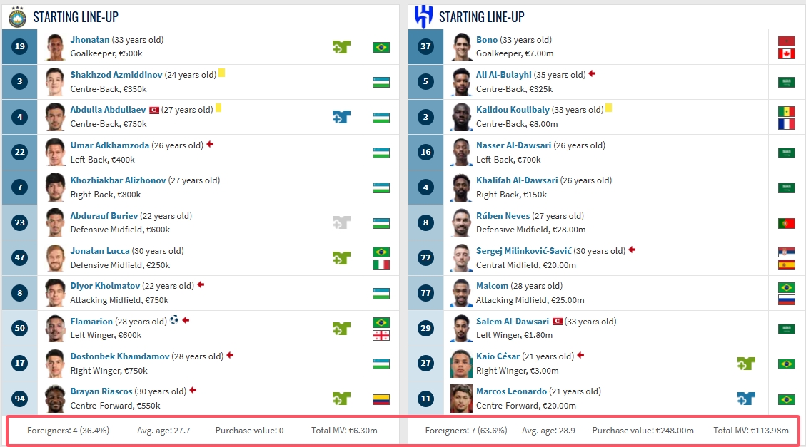 發布時間:2025年03月05日 22:26點擊:欄目:足球新聞 亞冠精英聯賽1/8決賽首回合,利雅得新月爆冷0-1輸給烏茲別克斯坦球隊塔什干棉農。新月首發身價1.1398億歐,塔什干棉農首發身價630萬歐,外援人數7-4! 本文標簽: 足球 亞冠精英 利雅得新月 五洲 相關閱讀: 庫庫雷利亞:我們要為賽季最后階段努力,要贏得歐協聯冠軍 衛報:英格蘭、蘇格蘭、威爾士北愛爾蘭將聯合申辦2035女足世界杯 實打實的8000萬!拉菲尼亞25球16助,金球獎賠率第3高于維尼修斯 斯基拉:尤文和一些英超俱樂部有意亞特蘭大中場埃德森 三級職業聯賽球隊分布:廣東省8隊最多,山東省6隊第二江蘇省第三 三浦颯太:如果把握機會更強應該能攻破申花大門 回到主場要贏 費迪南德&麥克馬納曼稱贊阿利森:他是利物浦本場比賽的英雄 A費:因黃牌缺席次回合令我傷心 相信球隊能逆轉巴薩 太賊了!埃利奧特走回己方半場并起跑,在門德斯盲區飛速插上絕殺 日本前腰山田康太因騷擾隊友妻子,被大阪鋼巴舍棄