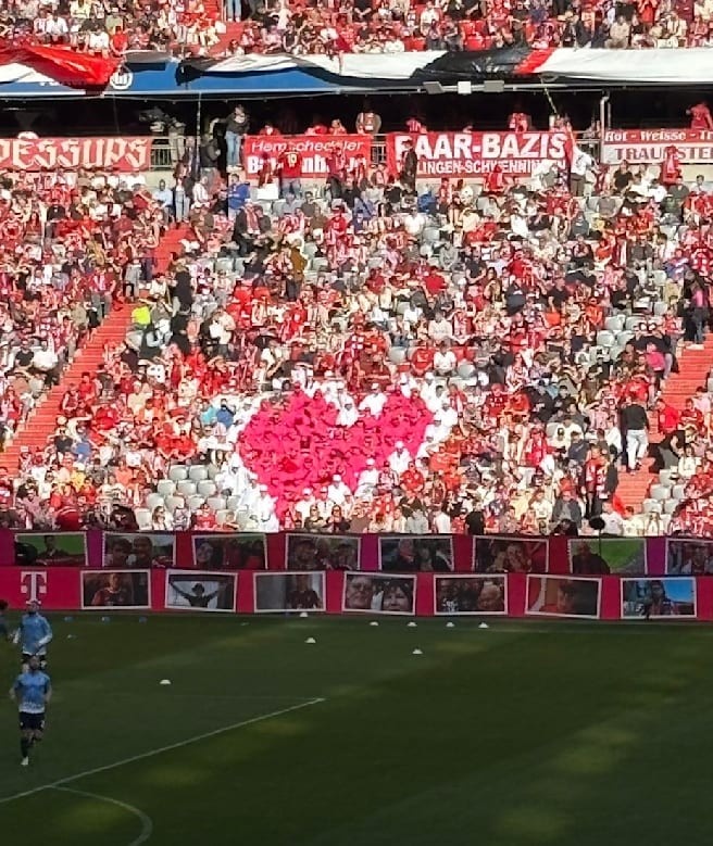 3月9日訊 本輪德甲,拜仁在主場2-3不敵波鴻。《圖片報》報道,拜仁安聯(lián)球場看臺上標(biāo)志性的德國電信“T”字形圖案在本場比賽被心形圖案取代。