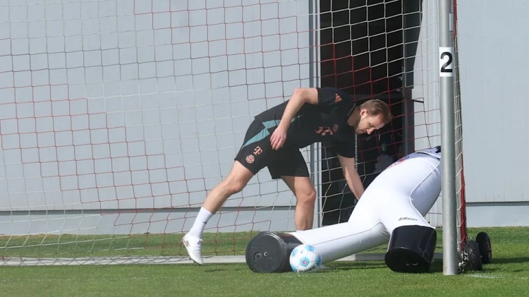 該媒體指出,拜仁大部分球員都選擇留在室內(nèi)進(jìn)行恢復(fù)性訓(xùn)練,但凱恩和奧利塞選擇來到訓(xùn)練場(chǎng)加練射門。盡管沒有門將球員協(xié)助,但他們借用了兩個(gè)充氣玩偶在球門位置鎮(zhèn)守。