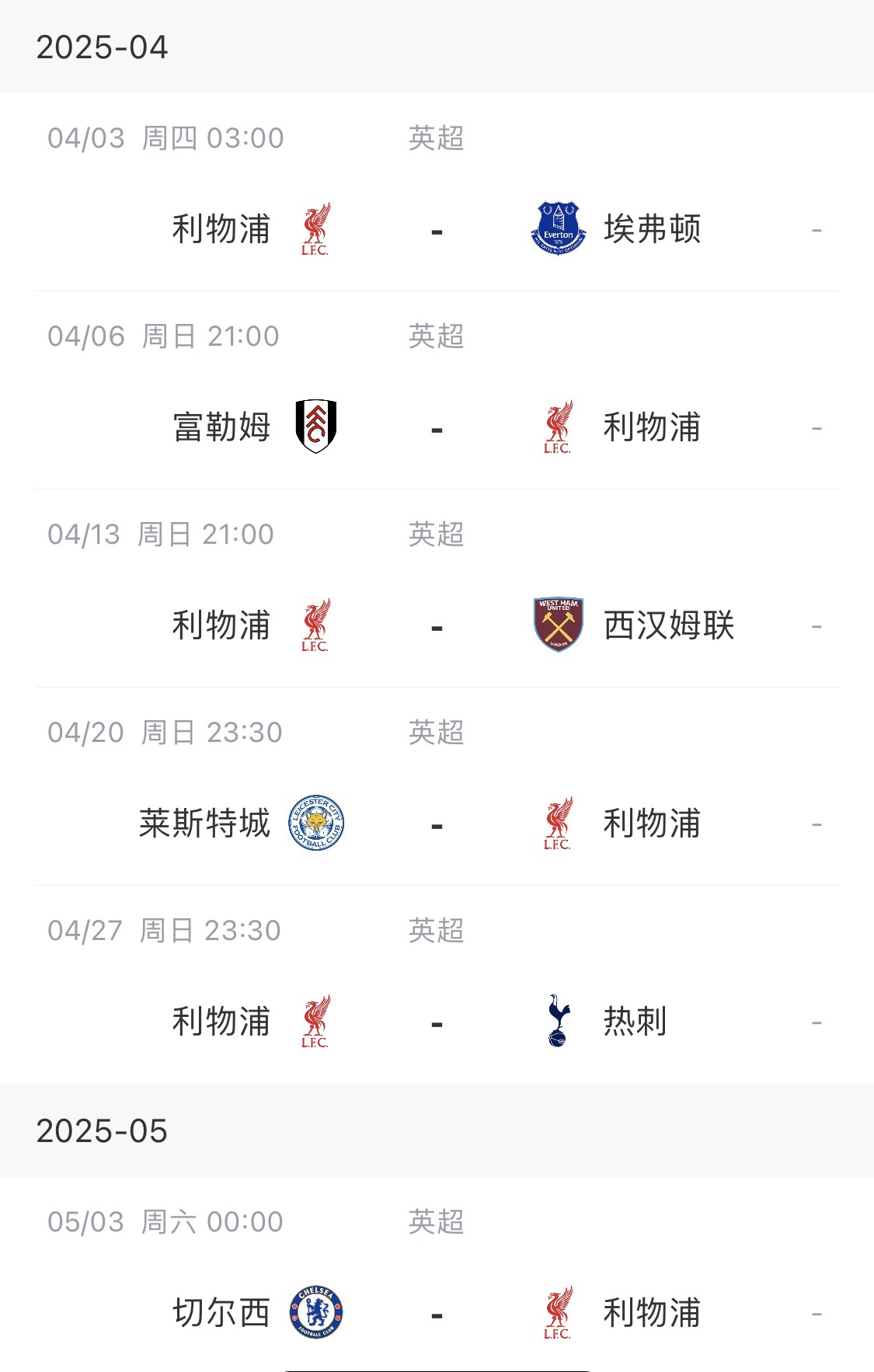若4月27日利物浦迎戰熱刺前,利物浦仍領先15分,那么這場比賽紅軍只要確保不敗,即可提前4輪奪冠。