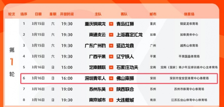 記者:中甲首輪深圳青年人vs佛山南獅可能延期至6月8日