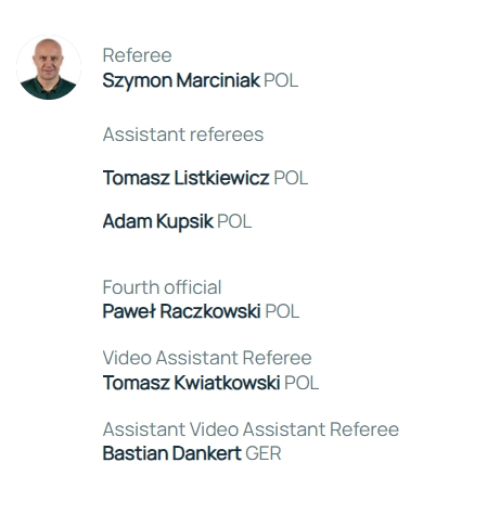 助理裁判:托馬斯-利斯特凱維奇(波蘭)、亞當-庫普西克(波蘭)