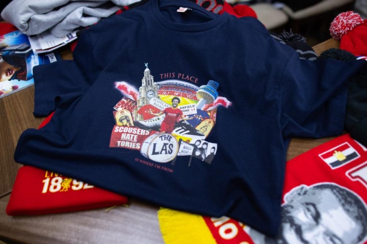 在距離利物浦主場安菲爾德只有5分鐘步行路程的一家商店里,你可以看到當地正在出售一件30鎊的T恤,上面印有目前利物浦這座城市的標志:樂隊披頭士和The La's、地標性建筑皇家利物大廈和利物浦電臺城塔,以及薩拉赫。