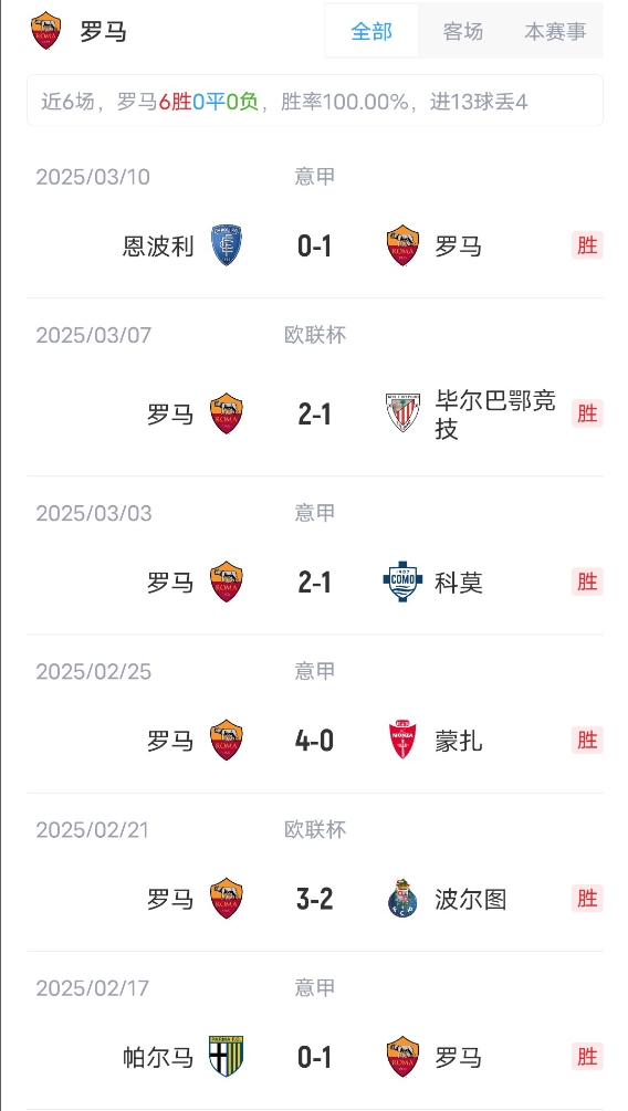 羅馬首發:99-斯維拉爾、5-恩迪卡、15-胡梅爾斯、23-曼奇尼、3-安吉利諾、16-帕雷德斯、4-克里斯坦特、2-倫施、35-巴爾丹齊、21-迪巴拉、11-多夫比克
