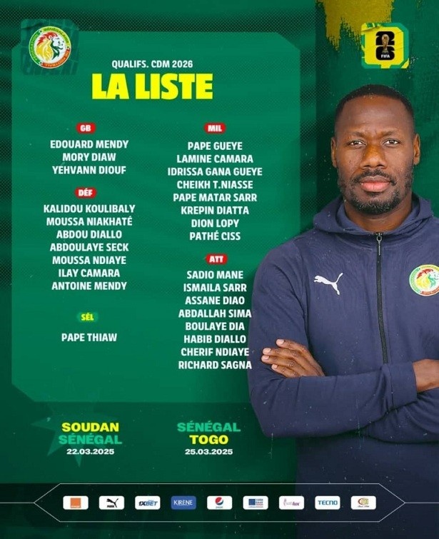 當?shù)貢r間本周四,塞內(nèi)加爾國家隊公布了新一期大名單,備戰(zhàn)接下來對蘇丹(3月22日)和多哥(3月25日)的兩場世界杯非洲區(qū)預選賽。其中阿薩內(nèi)-迪奧首次入選塞內(nèi)加爾國家隊。