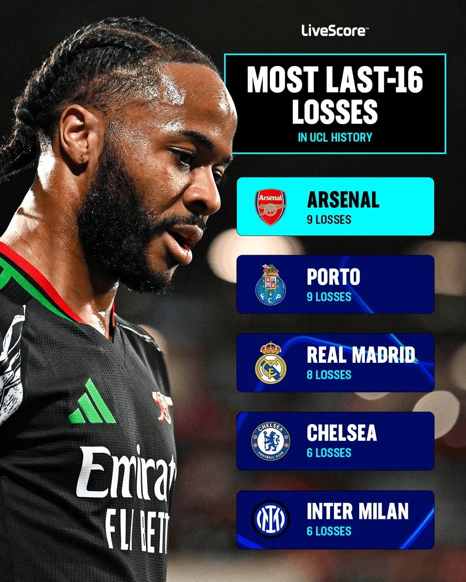 3月5日訊 歐冠1/8決賽首回合,阿森納客戰(zhàn)埃因霍溫的比賽即將打響。據(jù)統(tǒng)計(jì),在歐冠歷史中,阿森納和波爾圖是歐冠16強(qiáng)輸球次數(shù)并列最多的球隊(duì)。
